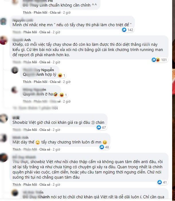 “Tôi nghĩ là đã tới lúc khán giả VN mình nên hành động tẩy chay 1 lần cho biết thế nào là coi thường khán giả VN, rồi sau này những nghệ sĩ khác cũng lại tiếp tục như vậy thôi