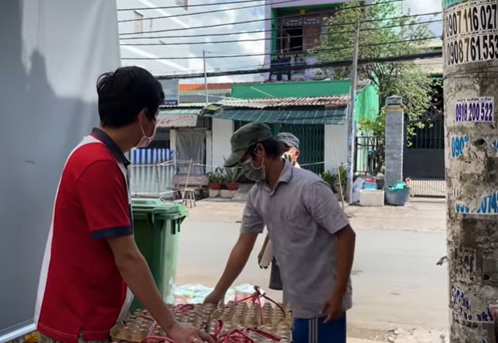 Trong clip, Khương Dừa cũng công khai danh sách các mạnh thường quân ủng hộ để chung tay giúp đỡ mọi người ở các điểm phong tỏa. ‘Ông trùm Thách Thức Danh Hài’ không đích thân nhận và vác các phần lương thực rồi tự tay kéo đến các điểm phong tỏa để phân phát.