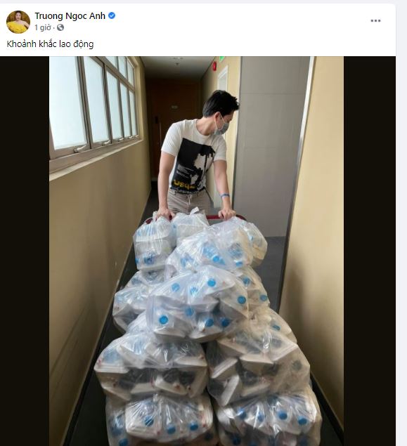 Mới đây nhất, vào ngày 7-8, mỹ nhân U40 đã bất ngờ đăng một hình ảnh chụp 1 người đàn ông trẻ đang kéo 1 xe chứa đầy phần cơm và nước cùng dòng trạng thái: “Nét đẹp lao động”.