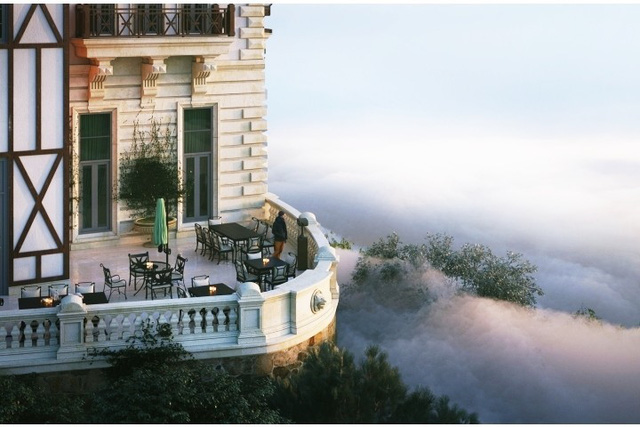 Nhìn từ bên ngoài, Tamdao Castle có vẻ ngoài như một biệt thự Châu Âu với tháp cao vút ẩn hiện trong màn sương mù.