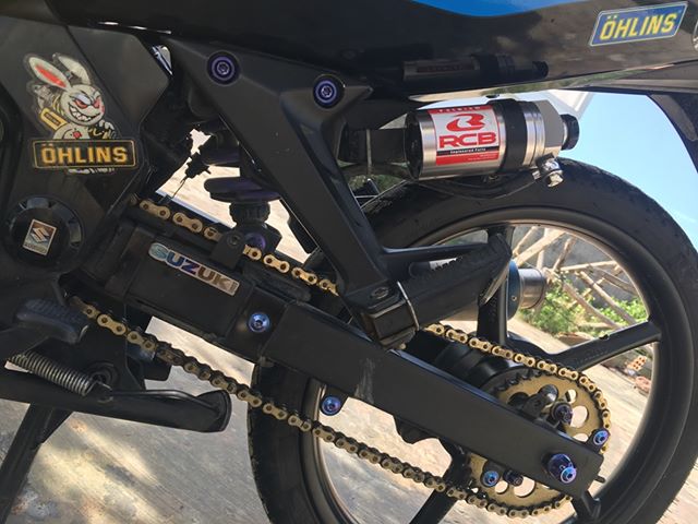 Người chơi xe đã sử dụng phuộc Racingboy bình dầu rời phiên bản lò xo tím độc nhất hiện nay trên thị trường: có cấu tạo lò xo và ty siêu lớn, khả năng đàn hồi cực tốt.