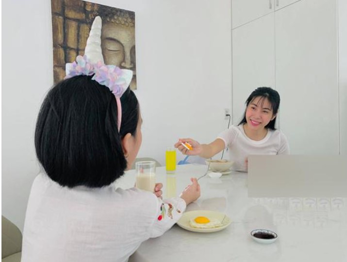 Con gái luôn giúp đỡ Thủy Tiên làm việc nhà