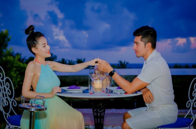 Đồng thời, nam nhạc sĩ cũng tiết lộ những bức ảnh ngọt ngào trong buổi cầu hôn đáng nhớ của cả hai. Theo đó, buổi cầu hôn của Lương Bằng Quang diễn ra tại một 1 resort sang chảnh ở Phú Quốc, trong không gian riêng tư. Nam ca sĩ đã chuẩn bị 1 đầu bếp, 1 phục vụ và 1 chiếc nhẫn kim cương 'siêu to khổng lồ' tuy không phải là kim cương thật nhưng được anh tiết lộ có giá 40 triệu đồng.