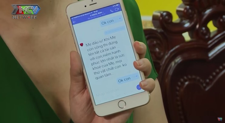 Để thể hiện được hết tình cảm của mình, nam ca sĩ còn tiết lộ một đoạn tin nhắn anh gửi cho mẹ với nội dung: "Mẹ dấu yêu, khi mẹ còn sống, xin hãy đứng tên tất cả tài sản của con. Với con, niềm hạnh phúc lớn nhất là sức khỏe của mẹ. Mọi thứ vật chất, con không quan tâm".