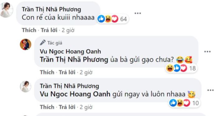 Mới đây, nữ MC xinh đẹp Hoàng Oanh đã nhận được sự chú ý khi lần đầu tiên đăng ảnh cùng con trai đầu lòng. Đáng nói, ngay sau khi đăng tải bức ảnh, nữ diễn viên Nhã Phương đã để lại bình luận nhận con trai Hoàng Oanh làm ‘con rể’ khiến khán giả vô cùng thích thú.
