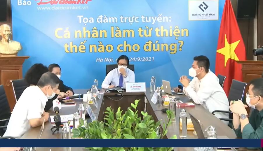 Mới đây, vào ngày 24/9, Mặt trận Tổ Quốc Việt Nam thông qua báo Đại Đoàn Kết đã tổ chức buổi tọa đàm với chủ đề "Cá nhân làm từ thiện thế nào cho đúng" với các khách mời gồm Ông Lưu Bình Nhưỡng, TS Luật, ĐBQH khoá XIV; Đại tá, TS, luật sư Lê Ngọc Khánh và một số nghệ sĩ nổi tiếng thường xuyên tham gia các hoạt động từ thiện: MC Phan Anh; ca sĩ Thái Thuỳ Linh.