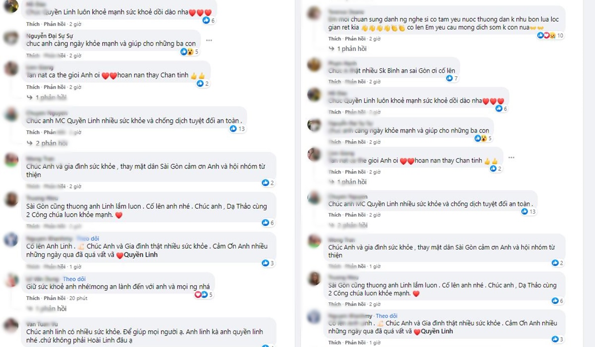 Bài đăng này ngay lập tức đã thu về hơn 50.000 lượt thích sau 2 giờ đăng tải, nhiều người thể hiện sự cảm kích trước tấm lòng, sự nhiệt huyết của MC Quyền Linh với cộng đồng: