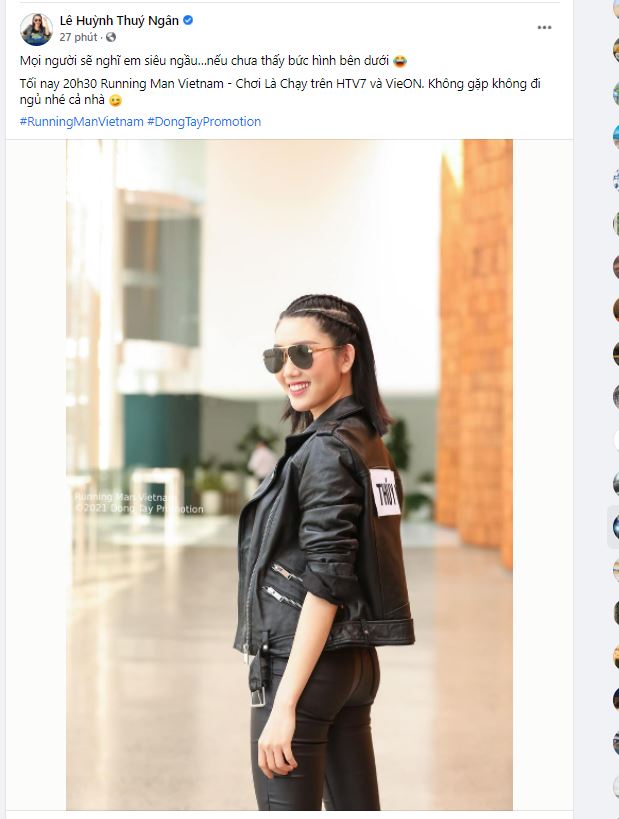 Ngọc nữ không khỏi hào hứng khi đếm ngược giờ lên sóng của Running Man mùa 2 và chia sẻ trên trang cá nhân: “Còn 5 tiếng đếm ngược là Running Man Việt Nam - Chơi là chạy chính thức quay trở lại rồi.”