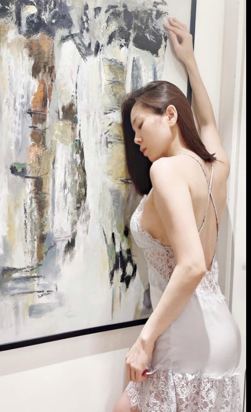 Đáng nói, nữ ca sĩ còn khéo léo tạng dáng bên một bức tranh lớn, dù là chụp từ đằng sau hay chụp chính diện, Lệ Quyên vẫn khoe được nhưng điểm mạnh trên cơ thể. Với thiết kế quyến rũ của bộ váy ngủ cùng cách tạo dáng, Lệ Quyên đã khoe được lưng trần mịn màng, trắng nõn nà, vòng 3 nóng bỏng cùng thân hình mỏng manh trước ống kính.