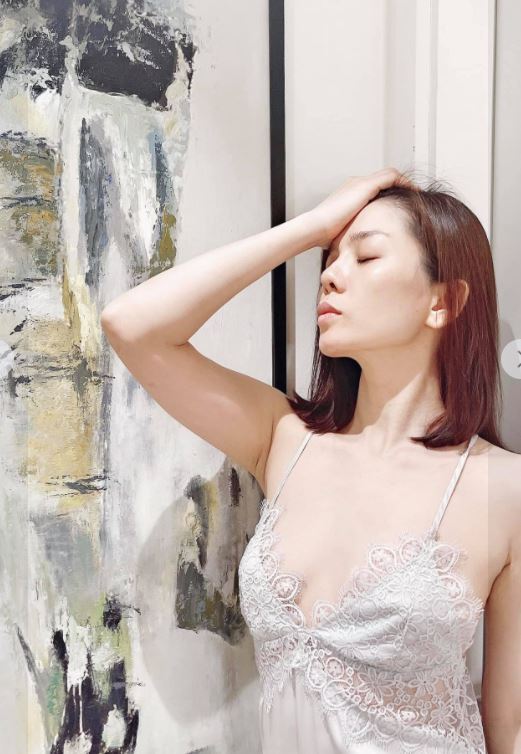 Theo đó, trong loạt ảnh này, Lệ Quyên đã diện một chiếc váy ngủ hai dây bằng lụa đầy quyến rũ.