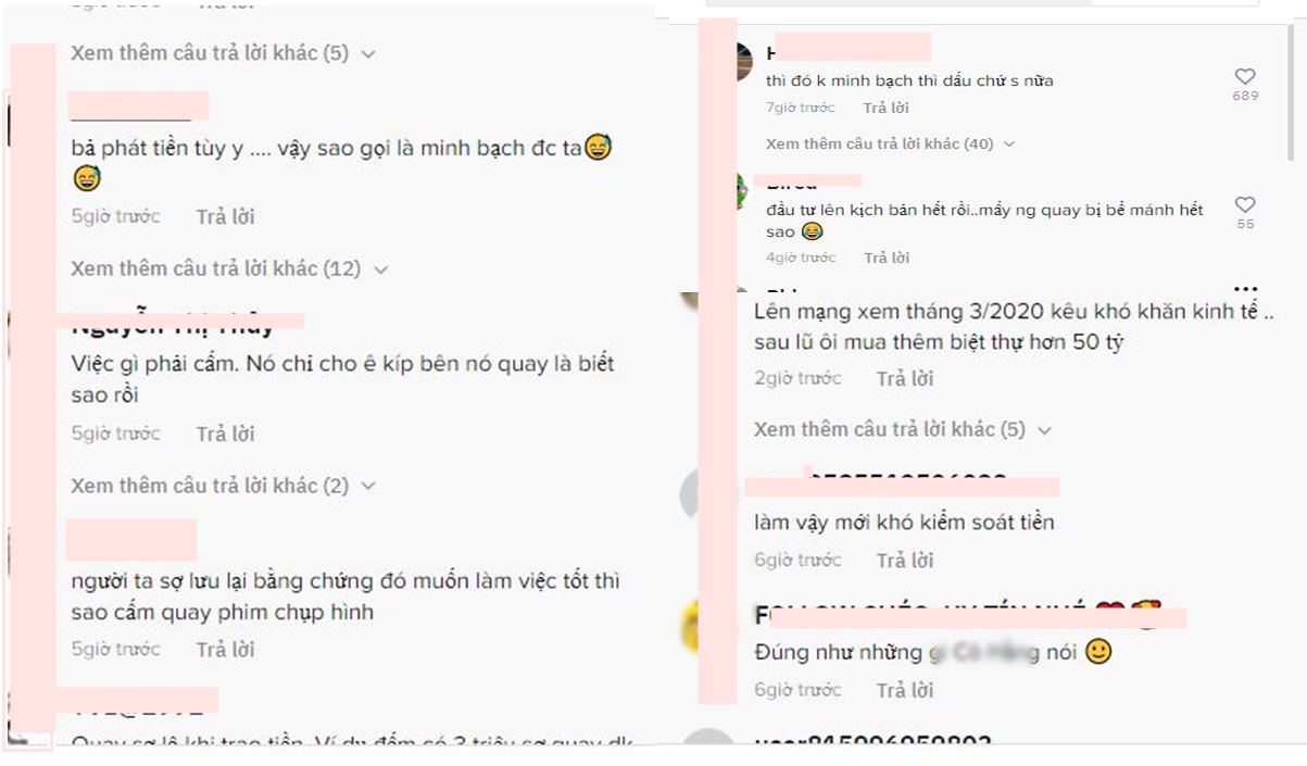 Dưới clip nói trên, nhiều người tỏ ra rất bức xúc, khó chịu và cho rằng Thủy Tiên đang làm công việc cộng đồng, công tác xã hội nhưng lại cấm người khác quay phim chụp ảnh là điều chưa thực sự phù hợp.