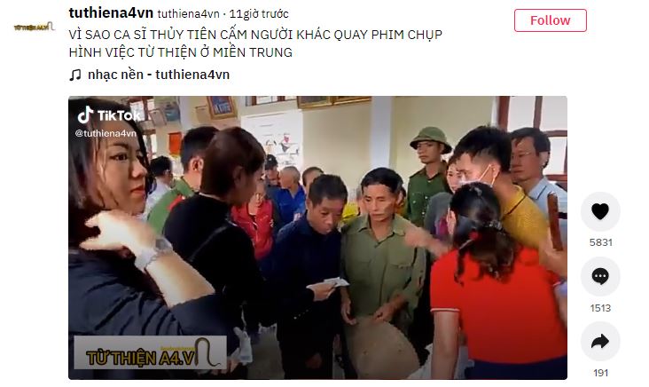 Cụ thể, trên mạng xã hội Tiktok vào ngày 3/9 đã lan truyền 1 đoạn clip ghi lại cảnh Thủy Tiên đang phát tiền mặt cho người dân miền Trung trong đợt lũ lụt 2020.