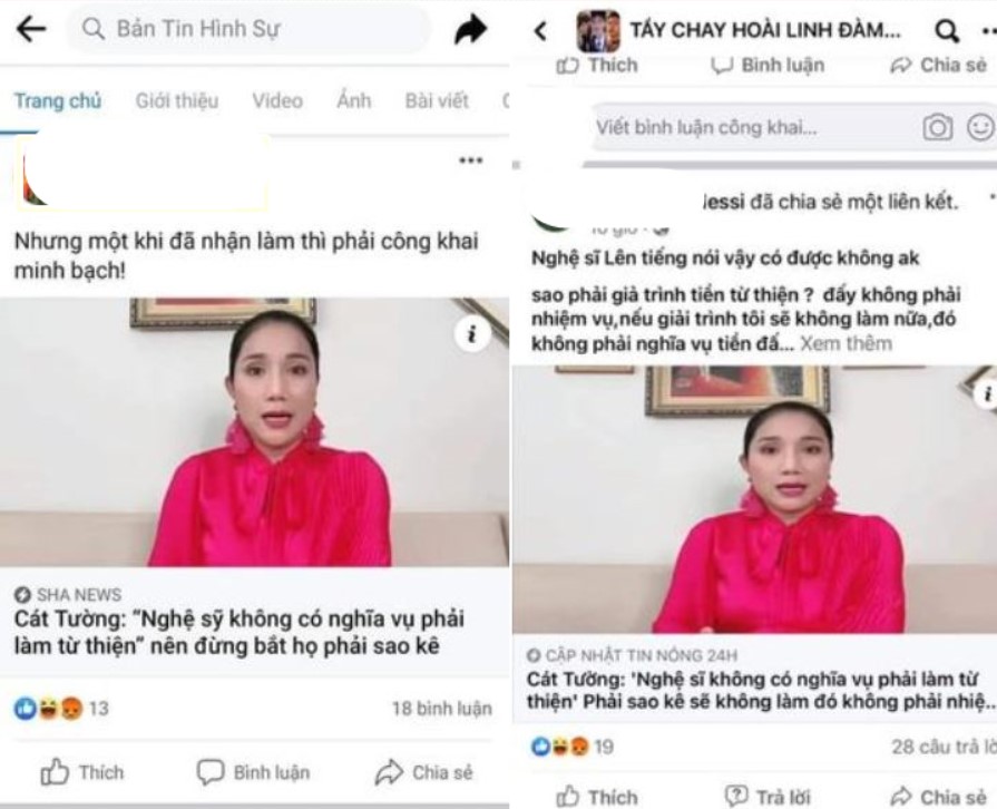 Thậm chí những thông tin sai lệch về phát ngôn của Cát Tường còn bị chia sẻ trong nhóm 'tẩy chay Hoài Linh, Đàm Vĩnh Hưng" với mục đích gây tranh cãi.