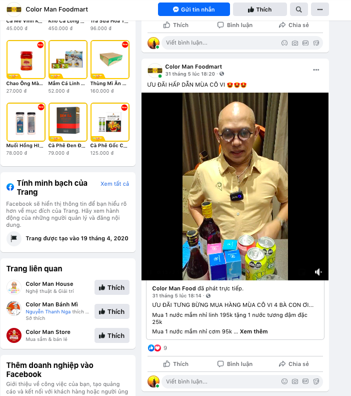 Là một ông chủ của công ty giải trí lớn, Color Man không ngại đi ship gà, anh thậm chí còn liên tục livestream bán nước mắm và mì tôm trên Fanpage Color Man Food. Có thể thấy đây cũng là cơ hội giúp ông phổ biến những sản phẩm thiết yếu mang thương hiệu cá nhân đến với đông đảo mọi người hơn.