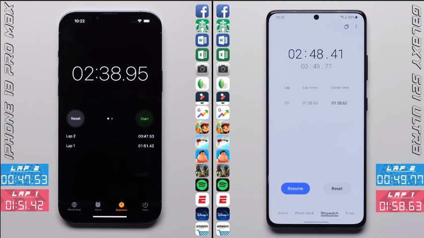 Mới đây, kênh Youtube "PhoneBuff" đã tiến hành một cuộc thử nghiệm thú vị về tốc độ mở ứng dụng giữa iPhone 13 Pro Max và Galaxy S21 Ultra. Thử nghiệm được thực hiện bằng cánh tay robot nhằm xác định xem chiếc điện thoại nào có thể tải ứng dụng nhanh và mượt hơn.