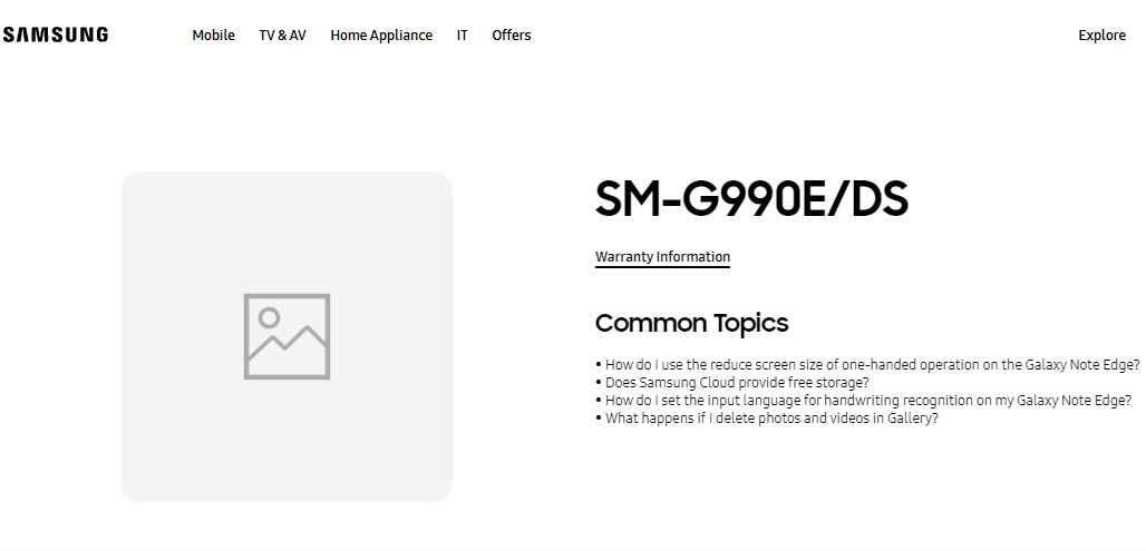Trang hỗ trợ Galaxy S21 FE hiện không có bất kỳ chi tiết nào khác ngoài số model SM-G990B của điện thoại thông minh. Cách đây chưa đầy một tháng, chúng tôi đã báo cáo rằng gã khổng lồ công nghệ có trụ sở tại Hàn Quốc đã quyết định âm thầm xóa tất cả các trang hỗ trợ trên các trang web của mình cho các quốc gia khác nhau về Galaxy S21 FE, khiến nó như thể nó không tồn tại.