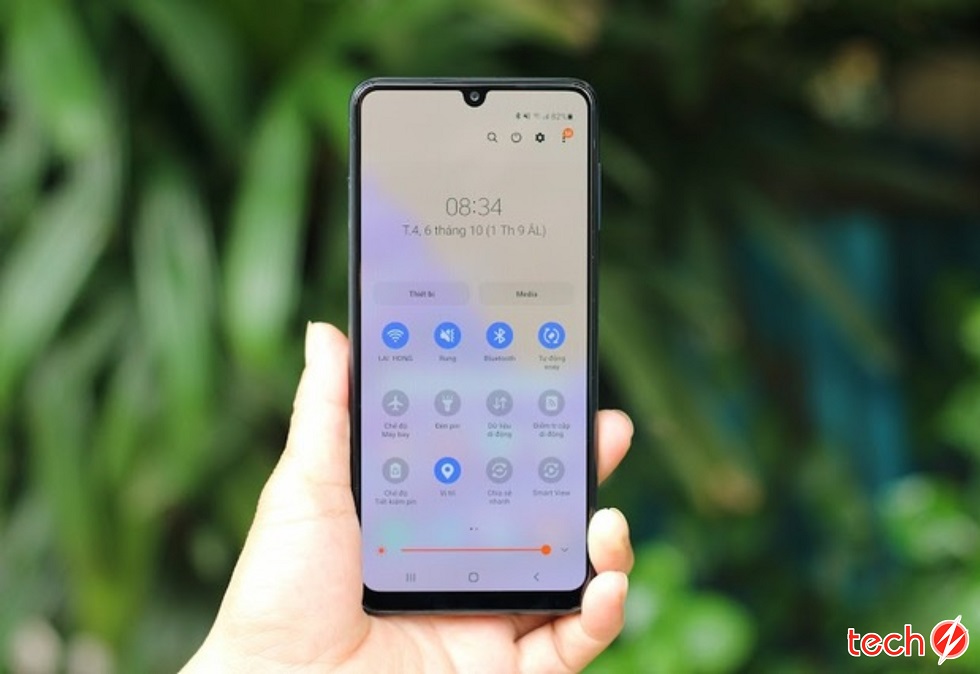 Chiếc smartphone tầm trung mới của Samsung tạo cảm giác chắc chắn khi cầm vào lần đầu. Các viền máy không quá dày cũng không quá mỏng được nối tiếp một cách liền mạch với nắp lưng giống như được đúc nguyên khối.