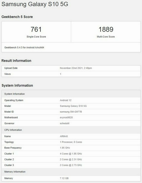Trong vài ngày qua, Galaxy S10 5G và Galaxy Note 10 5G được trang bị Android 12 đã xuất hiện trên Geekbench. Mặc dù có khả năng gian lận nhất định, nhưng những chiếc flagship Galaxy này trông có vẻ như chúng đang chạy hệ điều hành Android 12.
