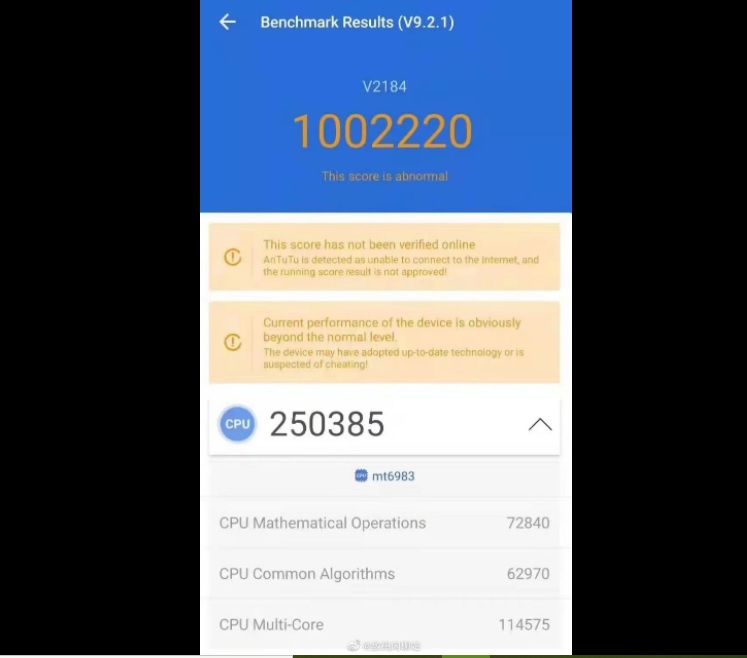 Theo hé lộ từ Blogger công nghệ @DigitalChatStation, hôm nay một con chip bí ẩn đã bất ngờ lộ điểm trên nền tảng đo hiệu năng Antutu Benchmark. Theo đó, một con chip với tên gọi Mediatek 6983 đạt đến 1.002.220 điểm theo công cụ Antutu. Điểm số này được xem là cao nhất từ trước đến nay trên nền tảng đánh giá hiệu năng Antutu.