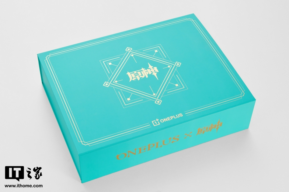 Hộp đựng của máy rất đồ sộ với màu xanh bạc hà. Trên nắp hộp là những họa tiết đặc trưng lấy từ game và logo thể hiện sự hợp tác cùng OnePlus.