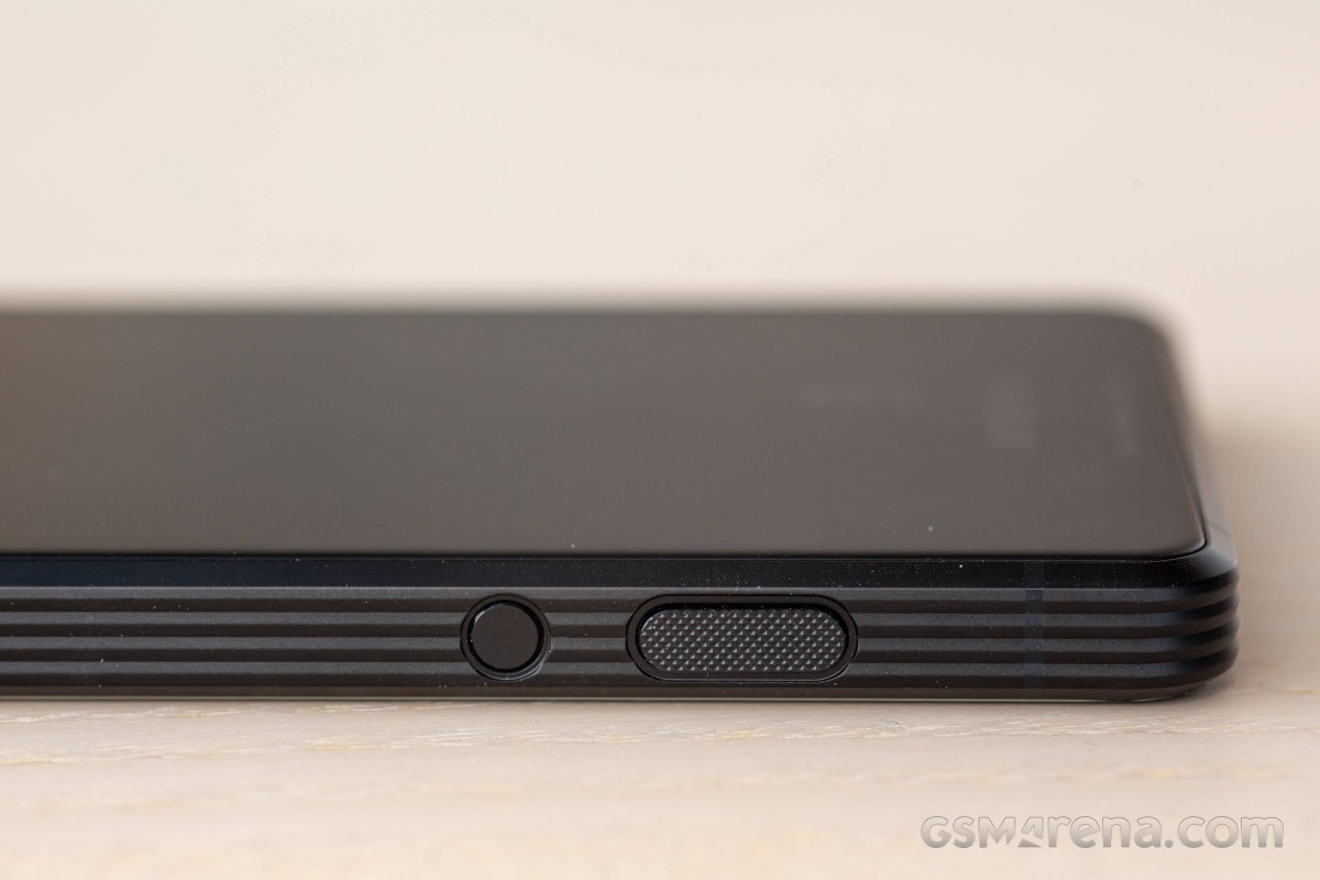 Xperia Pro-I được thiết kế trông rất chuyên nghiệp. Toàn bộ thân là một màu đen cổ điển duy nhất. Khung máy nổi bật với các sọc dọc tạo cảm giác cứng cáp.