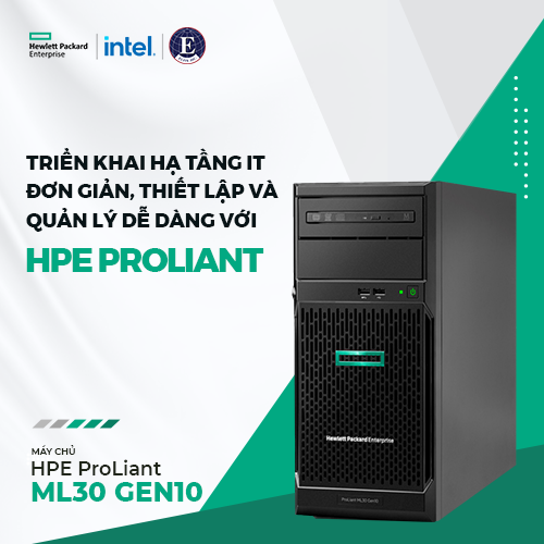 Máy chủ HPE ProLiant ML30 Gen10 sử dụng CPU Intel Xeon E thế hệ mới nhất với 6 nhân, bộ nhớ tối đa 64 GB DDR4 ECC UDIMM và lưu trữ tới 61.44 TB, có kích thước nhỏ gọn, chi phí đầu tư hợp lý, được thiết kế dành cho SOHO (Small Office Home Office) hoặc môi trường kinh doanh nhỏ. ProLiant ML30 Gen10 có thể đặt ở nhiều vị trí phù hợp mà không chiếm quá nhiều diện tích, cho phép doanh nghiệp truy cập vào ổ cứng, bộ nhớ và khe mở rộng PCI Express dễ dàng, hỗ trợ cài đặt, nâng cấp và quản lý đơn giản.