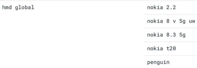 Một thiết bị Nokia có tên kiểu máy là 'Penguin' đã xuất hiện trên trang web 'Dịch vụ cung cấp thiết bị Android' của Google. Trong đó trình bày chi tiết quy trình “quản lý thiết bị của khách hàng doanh nghiệp cho người bán lại thiết bị và nhà cung cấp dịch vụ quản lý di động doanh nghiệp (EMM)”. Cái tên này xuất hiện cùng với Nokia T20 trong danh sách dành cho các thiết bị chỉ có Wi-Fi, nhưng vì một số lý do, danh sách này cũng đề cập đến Nokia 2.2, Nokia 8.3 5G và phiên bản Mỹ của nó.