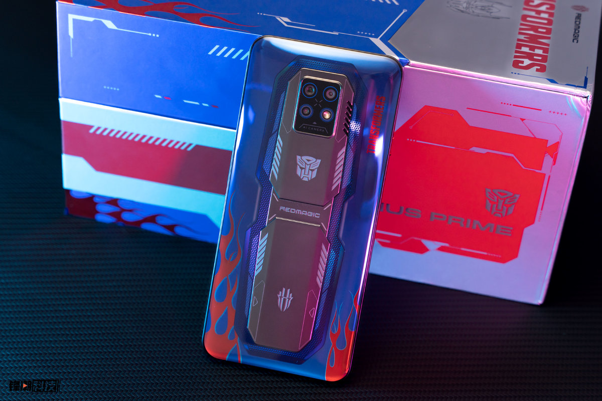 Red Magic 7 Pro Optimus Prime Limited Edition cũng sử dụng tông màu xanh đỏ quen thuộc trong thiết kế, ngọn lửa đỏ “bùng cháy” dưới điện thoại, màu sắc tươi tắn tôn lên vẻ cổ điển của Optimus Prime.