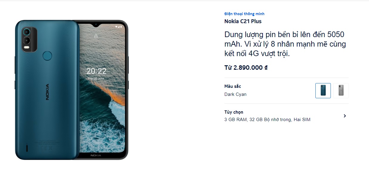 Khi truy cập vào trang chủ của Nokia Mobile tại Việt Nam, người dùng hiện có thể thấy Nokia C21 Plus ngay đầu tiên. Nhiều khả năng Nokia C21 Plus là sự nâng cấp nhẹ và có thể thay thế cho Nokia C20. Về giá bán, Nokia C21 Plus được niêm yết ở mức 2.690.000 đồng, đắt hơn khoảng 200.000 đồng so với giá niêm yết của Nokia C20 (2.490.000 đồng).