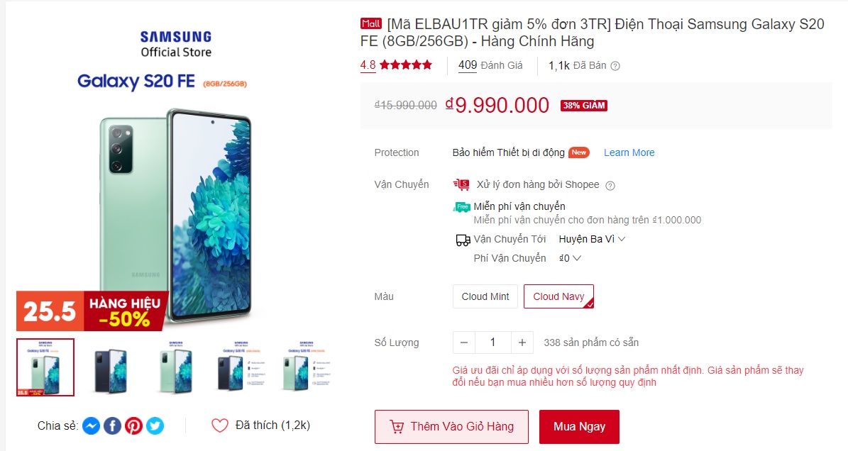 Theo ghi nhận tại Shopee, Galaxy S20 FE hiện có giá đập hộp (full VAT) chỉ từ 9.990.000 đồng. Đây là mức giảm rất sâu so với khi mới ra mắt và đưa nó ngang với một số smartphone tầm trung. Dù giá rẻ và ra mắt từ lâu, nhưng Galaxy S20 FE vẫn được đánh giá ngon hơn iPhone SE 3 mới ra mắt.