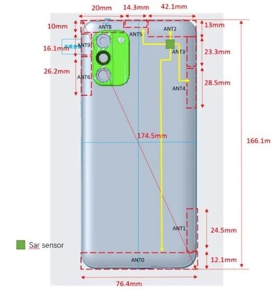 Những nguồn tin tức từ Trung Quốc cũng mang đến thông tin về kích thước của máy cụ thể là 166,1mm X 76,4mm (Chiều cao và chiều rộng). Kết xuất cũng xác nhận thiết lập ba camera phía sau đi kèm với đèn flash LED.