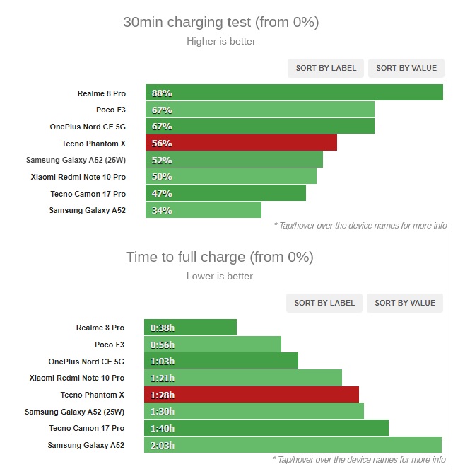 Mang trong mình viên pin 4.700 mAh, Phantom X dường như đứng đầu danh sách khi nói đến độ bền. Chắc chắn, chiếc điện thoại này sẽ vượt qua hầu hết các đối thủ cạnh tranh của nó chỉ trong vài giờ. Bài kiểm tra của gsmarena với điểm số độ bền tổng thể là 122h là một con số khá lớn. Phantom X có thể đủ cho hơn 14 giờ lướt web hoặc 16 giờ xem video liên tục.