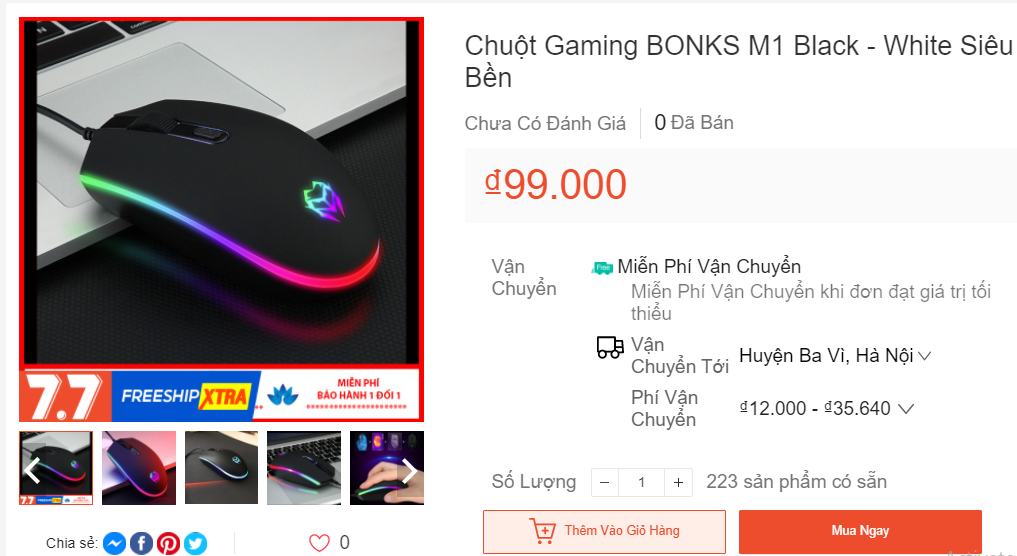 Trong khi đó con chuột máy tính còn bình dân hơn nữa. Đó là một chiếc BONKS M1 Black với dải đèn RGB xung quanh. Logo của con chuột này tiết lộ khá rõ danh tính của nó. Bạn có thể tìm mua BONKS M1 Black RGB trên shopee với giá chỉ khoảng 100 nghìn đồng.