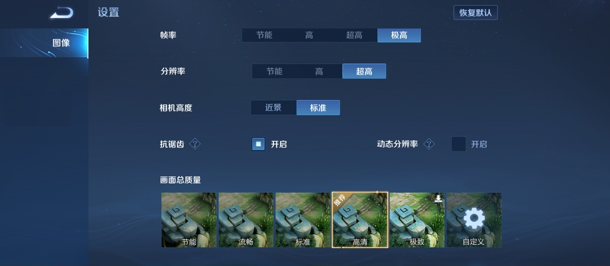 ROG Phone 6 Pro dễ dàng cài đặt hình ảnh: tốc độ khung hình rất cao, độ phân giải cực cao, chất lượng hình ảnh độ nét cao, tính năng khử răng cưa được bật.