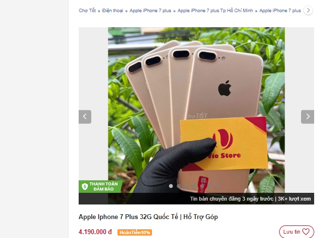 Theo khảo sát, những chiếc iPhone 7 Plus hiện có thể mua được với giá chỉ từ 4.190.000 đồng. Theo mô tả, đây là iPhone 7 Plus quốc tế với ngoại hình đẹp như mới và có dung lượng bộ nhớ 32GB. Mức giá này ngay với một chiếc Nokia G21 mới.