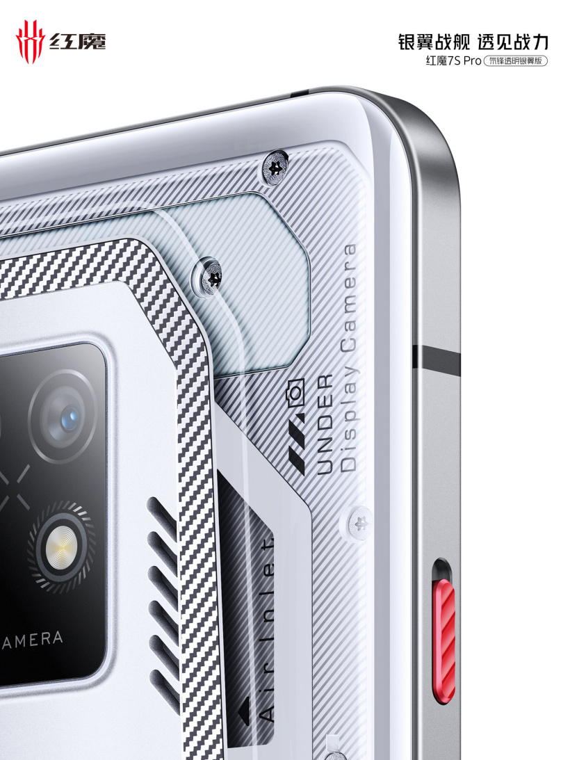 Bộ nhận diện thương hiệu Red Magic và logo của nó có thể được nhìn thấy ở trung tâm của Red Magic 7S Pro. Hình ảnh mặt trước của điện thoại cho thấy nó được trang bị camera selfie dưới màn hình.