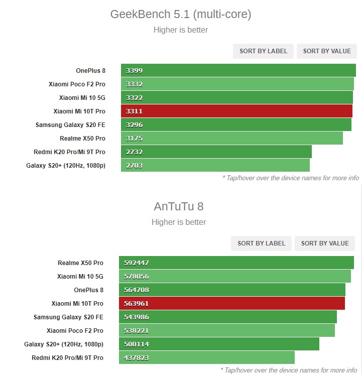 Các điểm Test hiệu năng dưới đây cho thấy Mi 10T Pro 5G có thể đọ sức được với cả Galaxy S20 FE, OnePlus 8 trong một số trường hợp nó nhỉnh hơn cả S20+.