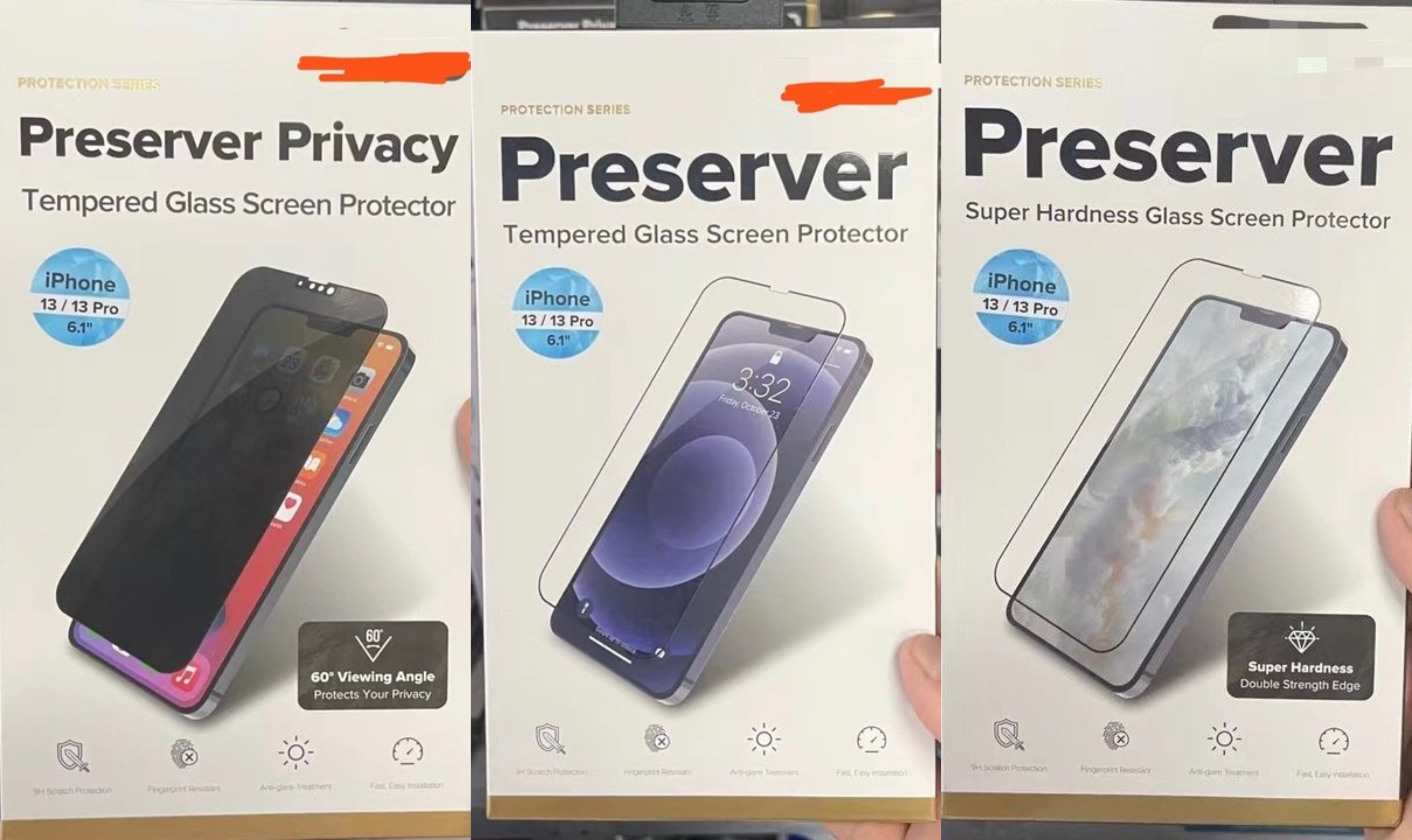 Những hình ảnh được chia sẻ cho thấy những miếng dán màn hình của iPhone 13 khá khớp với rò rỉ. Chúng là những miếng dán cường lực trong suốt và có cả loại phim phân cực chống nhìn trộm.