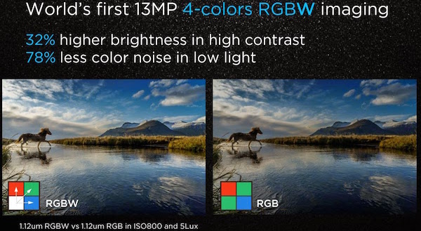 Máy ảnh trên smartphone thường được trang bị cảm biến RGB tiêu chuẩn đọc ánh sáng đỏ, xanh lục và xanh lam, sau đó trộn chúng thành các màu thích hợp. Tuy nhiên với cảm biến RGBW nó dùng chổ sung thêm màu trắng hỗ trợ ánh sáng trắng tinh khiết.