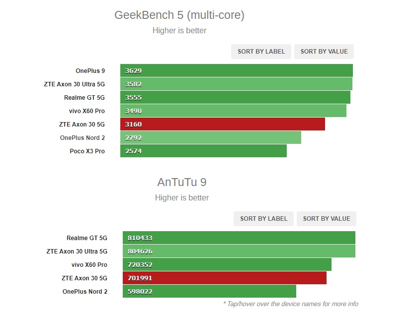 Snapdragon 870 trên ZTE Axon 30 là chon chip chỉ thua Snapdragon 888. Máy đi kèm RAM 6/8/12GB và bộ nhớ trong từ 128GB. Mặc dù hiệu năng lõi đơn và lõi đa nhân không mạnh vượt trội so với một số đối thủ cùng tầm nhưng Axon 30 không thua kém quá nhiều và quan trọng là chip hoạt động rất mát.