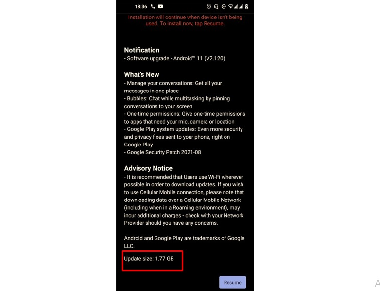 Bản cập nhật mới được Nokia thông báo có mã là V2.120 và có thể tải về theo phương thức OTA (tải về qua mạng). Đây là bản cập nhật 1,77 GB và bao gồm các tính năng như bong bóng trò chuyện, quyền một lần và cập nhật cho hệ sinh thái Google Play nhằm tăng cường bảo mật và quyền riêng tư. Bản vá bảo mật được tăng cường đến tháng 8 năm 2021.