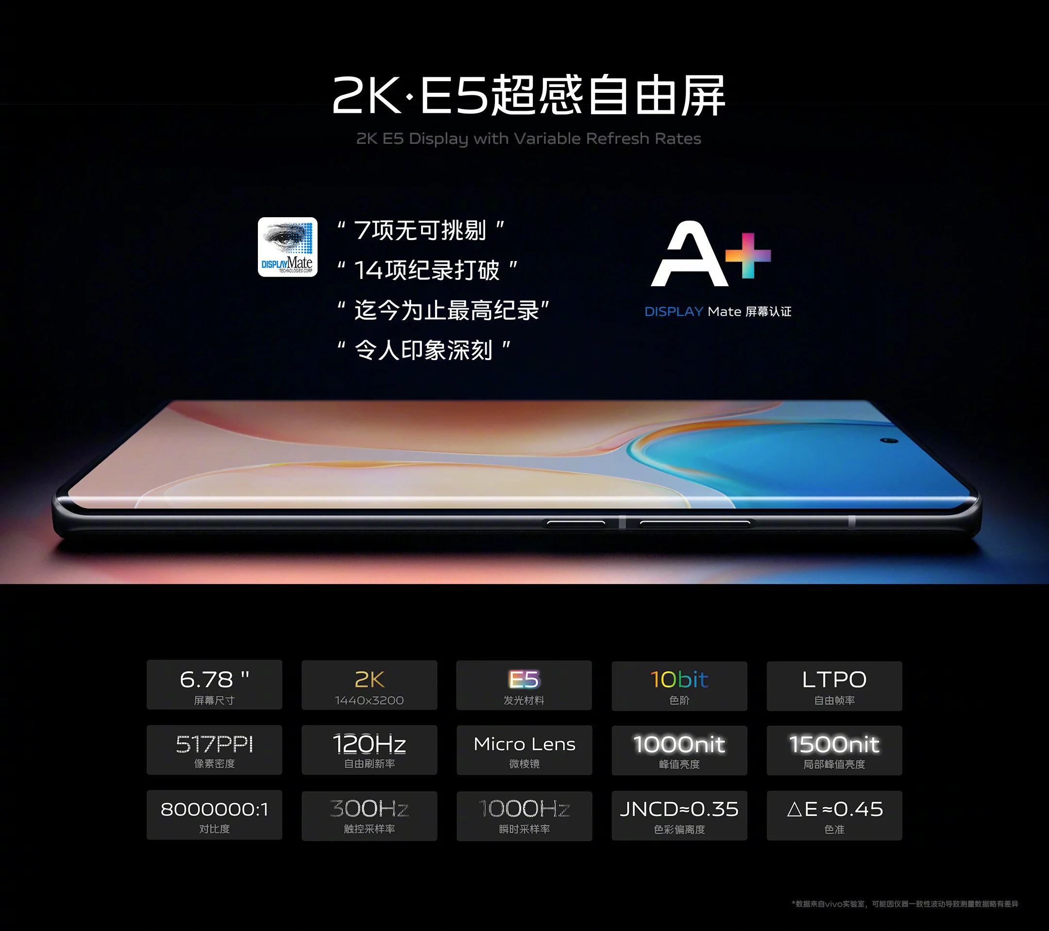 Vivo X70 Pro + có màn hình 6,78 inch độ phân giải 2K (3200 x 1440). Đó là màn hình E5 AMOLED do Samsung sản xuất và nó có tốc độ làm mới 120Hz. Độ sáng tối đa mà màn hình này đạt được là 1500 nits, tốc độ lấy mẫu cảm ứng 300Hz (tối đa 1000Hz). Màn hình đã nhận được xếp hạng chứng nhận A + từ DisplayMate.