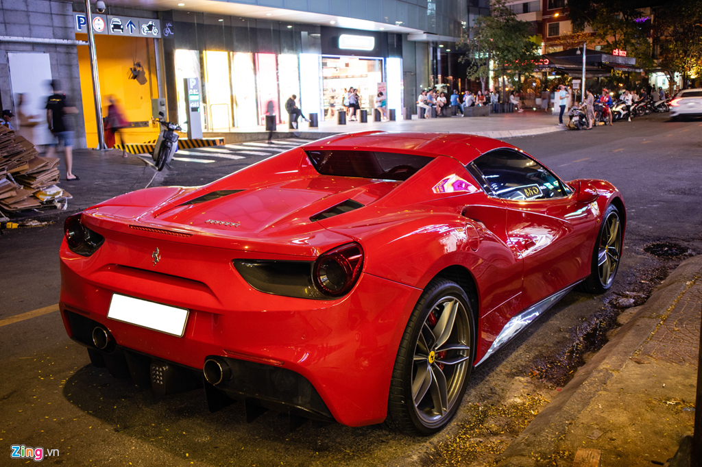 Siêu xe Ferrari 488 GTB Spider được bắt gặp trên đường Ngô Đức Kế, quận 1, TP.HCM khi Cường Đô La chở vợ mới cưới Đàm Thu Trang đi ăn tối.