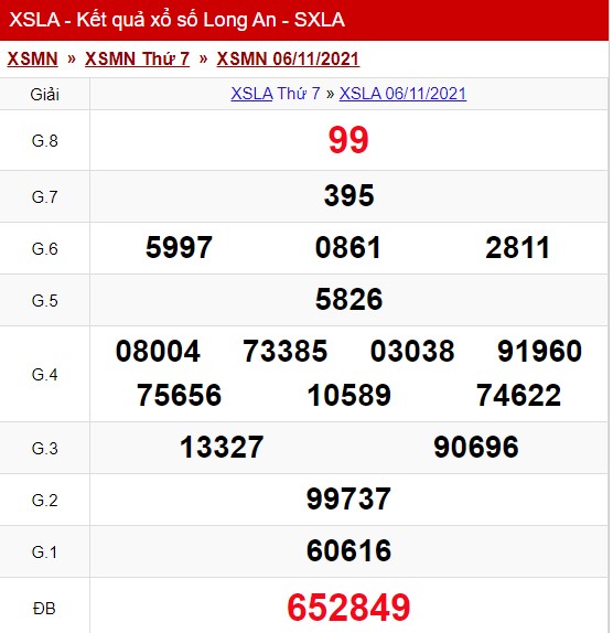 Kết Quả Xổ Số Long An Thứ 7 ngày 6/11/2021