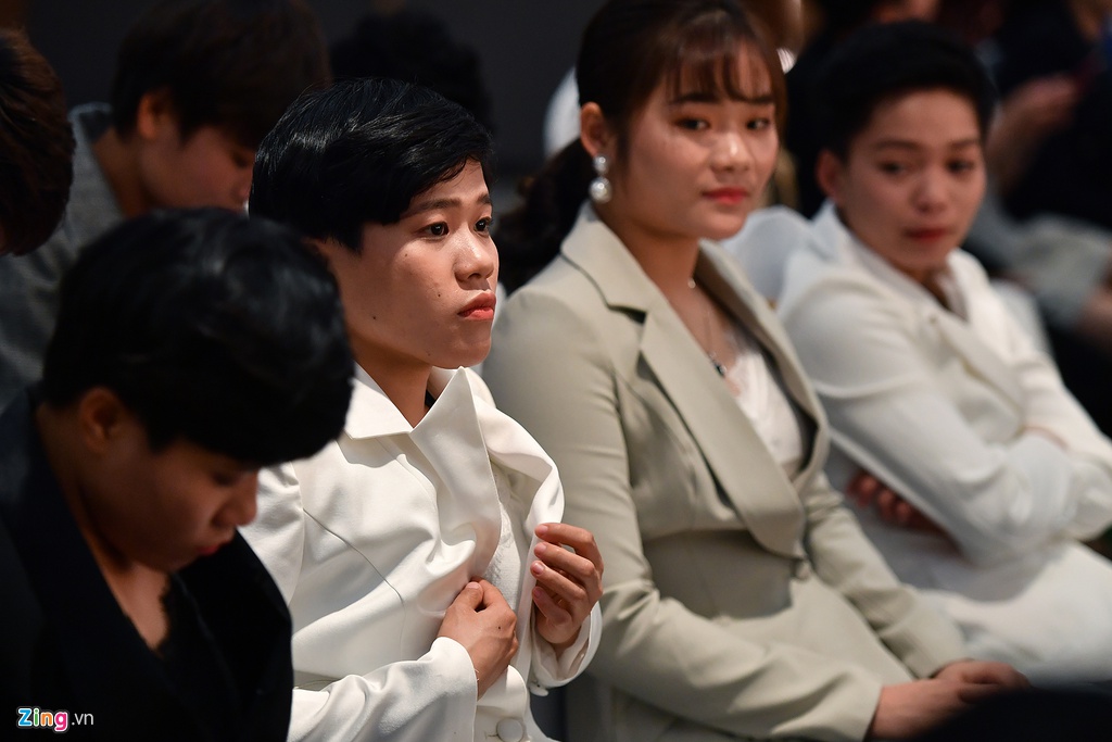 Trong khi đó, tiền vệ Nguyễn Thị Tuyết Dung hét lên “Em không đi giày cao gót đâu vì chưa đi bao giờ”. Hầu hết các nữ cầu thủ đều tỏ ra lúng túng khi được phát những bộ trang phục mới lạ.