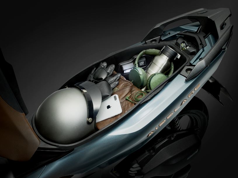 Cốp chứa đồ trên Honda Air Blade được nâng cấp lớn hơn với dung tích 22,7 lít. Trong khi ở phiên bản trước, dung tích cốp chứa đồ nhỏ hơn 0.9 lít so với bản 2020 này. Với cốp chứa đồ cỡ lớn này, người dùng có thể để được 2 chiếc mũ bảo hiểm loại thông dụng. Không những có dung tích lớn hơn, cốp xe Air Blade mới còn có đèn soi để giúp người dùng dễ dàng tìm kiếm vật dụng trong điều kiện thiếu ánh sang.