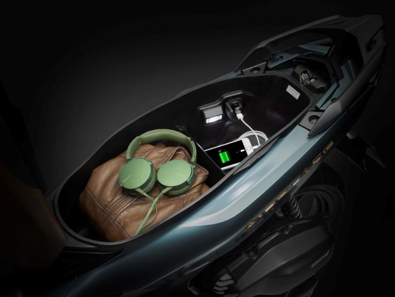 Với cổng sạc 12W nằm trong hộc đựng đồ sẽ giúp cho khách hàng có thể sạc điện thoại khi di chuyển trên đường. Cổng sạc này khá giống với cổng sạc đã được Honda trang bị trên xe SH.