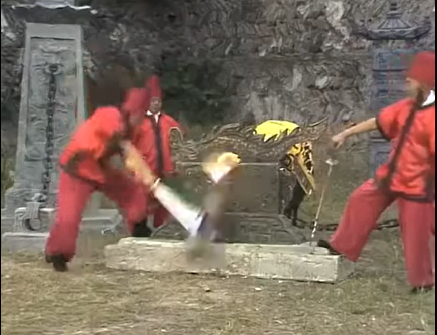Khi tất cả các khâu chuẩn bị đã xong, đạo diễn Dương Khiết hô “Diễn!”, các bộ phận được giao lần lượt làm theo đúng kế hoạch ban đầu. Một tiếng nổ xuất hiện sau khi đao phủ dập dao chém, làn khói bốc ra, đầu rơi xuống và máu phun trào xối xả. Tất cả hiệu ứng được đánh giá là khá đạt, đồng thời cảnh quay máu me bậc nhất của Tây Du Ký 1986 cũng đã hoàn thành một cách tốt đẹp.