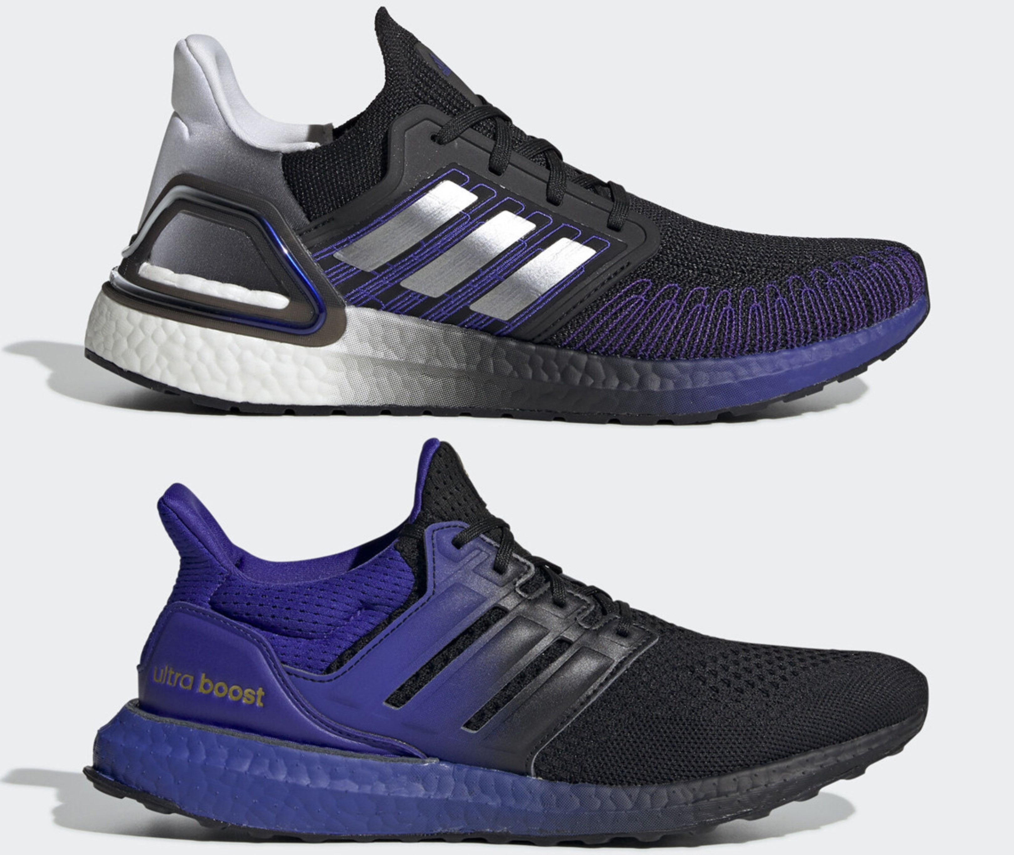 Trong khi đó, UltraBoost 20 mới sử dụng bộ màu phong phú hơn. Bên cạnh tông màu xanh dương và đen nêu trên, hãng đồ thể thao này còn thêm vào đôi giày của mình màu bạc và trắng. Thân giày được chia thành 2 phần riêng biệt là đen và bạc.