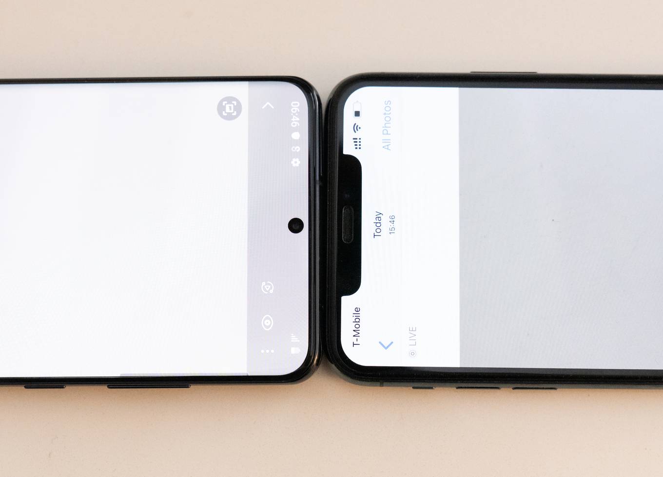 Trong khi iPhone 11 Pro Max của Apple vẫn giữ thiết kế tai thỏ quen thuộc đã được sử dụng từ iPhone X thì Samsung lại sử dụng thiết kế đục lỗ ở giữa cho Galaxy S20 Ultra. Bên cạnh đó, nhờ thiết kế loa thoại rất nhỏ, phần viền của Galaxy S20 Ultra cũng mỏng hơn hẳn so với iPhone 11 Pro Max.